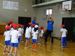 今回行われた三年生の親子活動は、レイクスキャラバンといってレイクスターズの選手を招いて、
