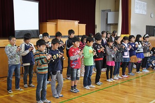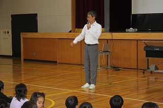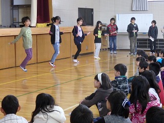 最後に5年生全員で歌『ありがとうの花』を発表してくれました。また、体育委員会から、なわとびのいろいろな跳び方を紹介してくれました。
