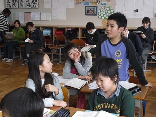 授業では、3人または4人ずつのグループに分かれて、各自が書いた記事の下書きを読み合い、より分かりやすい記事になるように、お互いにアドバイスをしあいました。