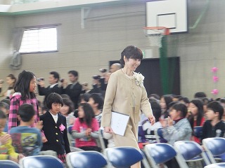 入学式では、担任に続いて、6年生の人に手をつないでもらった
