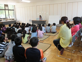 去る5月11日月曜日に読書ボランティアサークル『あめんぼ』のみなさんによる読み語り会をしていただきました。