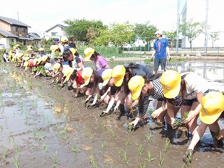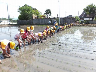 木戸口さんの田んぼで、5年生が田植えを行いました。