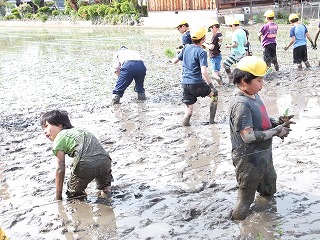 中には全身泥まみれになって、懸命に植えている子もいました。