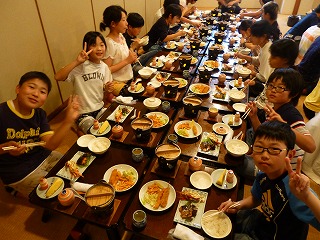 その後、湖の子にもどって、シャワーをあびたり、夕食をとったりした後、湖の子の夕べで、
