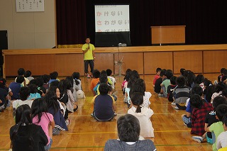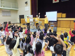 今年は、最近自転車による交通事故が増えているということで、1・2年生には、基本的な自転車の交通ルールを教えて頂きました。