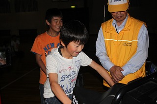 さらに、3年生以上には、自転車シュミレーター体験を通して、危険を自分で考え、日頃の行動をふりかえることをねらいに教えて頂きました。