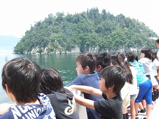 2日目は、朝のつどいに続いて、朝食をとった後に、船内でできるびわ湖環境学習を行いました。