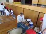 体育館で反復横跳び、上体起こし、長座体前屈の記録を測定しました。