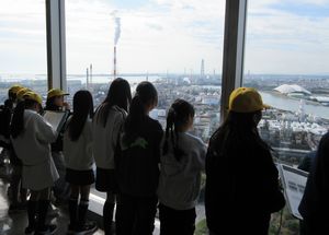 午前中は四日市港を訪れ、化学コンビナートを見学したり、港の働きについてお話を聞いたりしました。