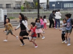 中庭で、1年生と仲良く遊ぶ6年生の姿も、よく見られます。
