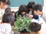 もんしろちょうの卵を観察しています。