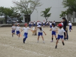 リレーのバトンパスを練習しています。 今年も、少人数指導を行っています。