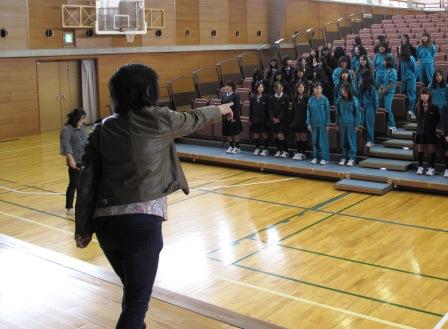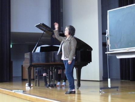 今日10月23日(水)は、日野町の菱川先生にお願いして合唱の指導をしていただきました。