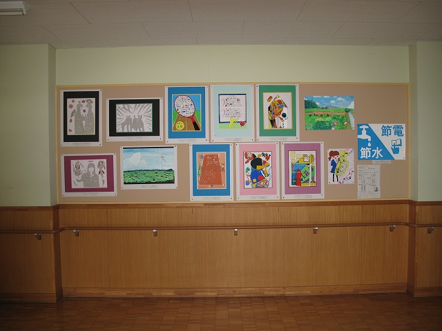 本校では美術室前の廊下に生徒の作品が展示してあります。