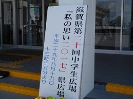 19日(土)、能登川コミュニティーセンターにて中学生広場「私の思い2017」が開催されました。滋賀県の中学校と特別支援学校の105校、総数28000人を超える中学生の意見作文の中から選ばれた12名の意見発表会です。湖東中学校からも3年生の乾澤さんの作文「想いを大切に」が選ばれ、満員の会場のステージに立ち立派に発表してくれました。すてきな家族に囲まれた曾祖母への思いに感動しました。また、運営面では中学生実行委員として3年生の廣瀬くんと中嶋くんが当日を含め3日間の活動を立派にやり遂げてくれました。改めて子どもたちの力に感心させられました。心温まる一日となりました。