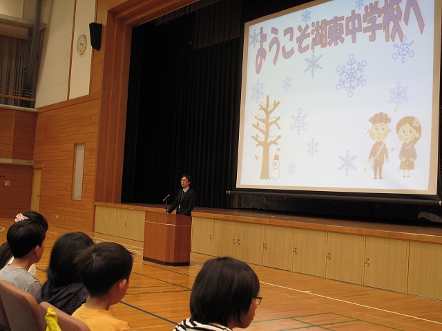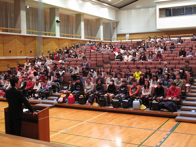 12月4日(金)は本校体育館で28年度の入学説明会を行いました。今年は3つの小学校が親子で集まってもらい、説明を聞いてもらいました。