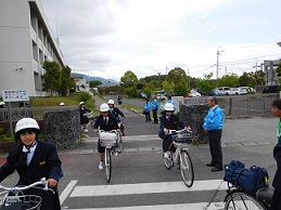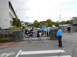 湖東中学校では、湖東地区の補導員さんに「声かけ運動」の取り組みをしていただいています。生徒の下校時刻に合わせて来校していただき、校門付近であいさつとヘルメット着用などの指導をしていただいています。5月10日(水)にも実施していただきました。一人ひとりに「さようなら」「気をつけて」などあたたかい声をかけていただきました。地域の皆様のご支援に感謝しています。
