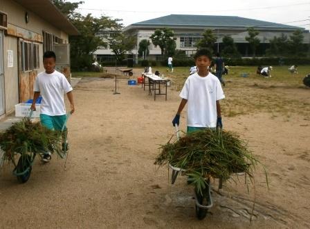 草があまりにもたくさん広がっていたために、大変苦労しましたが、それでも1時間あまりでかなりきれいにしてもらいました。 皆さん、ご苦労さまでした。