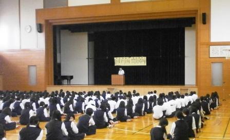 広島の土砂災害の話が出たときは、全校生徒はより一層神妙に聞いてくれました。 その後、表彰伝達や新しいALTの紹介がありました。