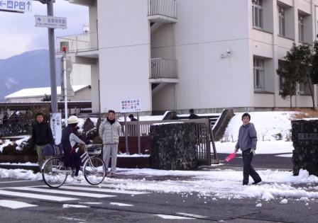 これは「寒い中をよく頑張ってやってきたね。勉強もしっかり頑張ろうね!」という気持ちを込めて声をかけていただいています。本校生徒諸君は声をかけていただいたら、というより声をかけてもらう前に「ご苦労さまです。勉強頑張ります」という気持ちを込めて大きなあいさつをお願いします。