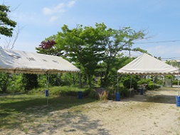 6月からの体育の授業などグラウンドでの活動に向けて、生徒の熱中症対策としてテントを設営しました。体育の授業や部活動など、これから暑くなる中での活動になります。生徒の安全に十分注意しながら活動を再開します。