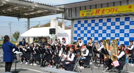 10月11日(土)はさわやかな秋晴れのもと、吹奏楽部が校区の事業所の「秋まつり」に招いていただき、オープニングに花を添えました。文化祭直後でしたが、朝や休日も練習に励みすばらしい演奏を披露しました。1・2年生での初めての発表となりましたが、挨拶もしっかりとでき、思いっきり演奏を楽しむことができました。日頃頑張っている成果を多くの方に聴いていただけることができ、とてもいい経験となりました。