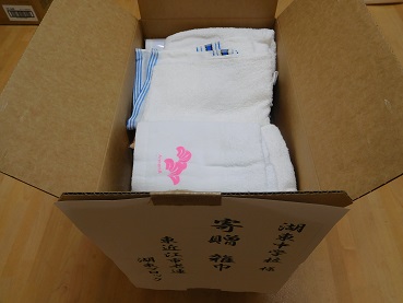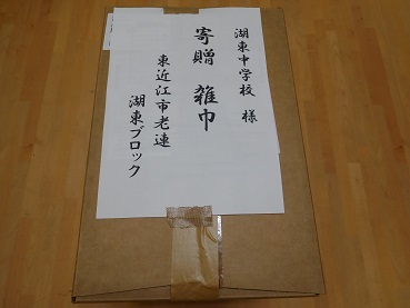 東近江市老連の湖東ブロックのみなさんから、雑巾を寄付していただきました。段ボールいっぱいに雑巾が入っていて、毎年いただいています。ありがたいことです。この雑巾は、日々の学校清掃「無言清掃」などに活用させていただきます。湖東中学校への多方面からのご支援に感謝しています。