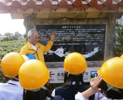 ヘルメットをしっかりかぶって、懐中電灯を携えガマ体験をしました。