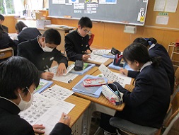 栄養教諭さんをお招きし、1年生食育授業を行いました。「未来の自分のための体づくりについて考えよう」を学習の目標として取り組みました。これからの成長のために大切な体づくり。1年生はしっかり学習に取り組んでいました。