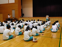 1学期の締めくくりとして、3年生では学年集会が開かれました。各学級代表の発表など、学年通信などを使いながら1学期を振り返りました。落ち着いて話が聞ける3年生らしい、締めくくりにふさわしい集会となりました。その後は、体育の授業で取り組んできたダンス発表が行われました。体育祭でのダンス発表を楽しみにしておいてください。