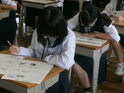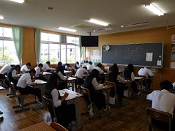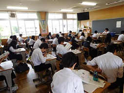 全校生徒が今年度初めての定期テスト「中間テスト」に取り組みました。テスト日の「湖東タイム」はテストに向けての学習時間です。教科書や問題集を使って真剣に学習している姿が見られました。そして、いよいよテストがスタート。特に、1年にとっては初めての中間テストです。緊張感漂う静寂の雰囲気の中、鉛筆の音だけが聞こえていました。学習の成果が発揮できたことを願います。