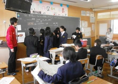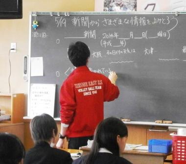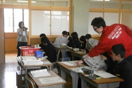 1年の社会科授業では、新聞にはどのようなことが書かれているかを勉強していました。
