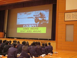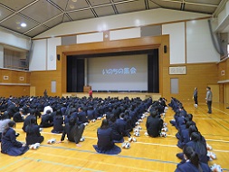 今年度2回目の「いのちの集会」をおこないました。いのちの集会は、本校職員が生徒たちに「いのち」の大切さを語る全校道徳です。今回は2年生担当の田口先生の授業でした。自分のいのちを大切に、仲間のいのちを大切に、これからの毎日を大切にすごしてほしいです。