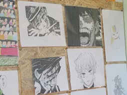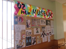 2年生の廊下に「2年MUSEUM」が展示されています。2年生の生徒を対象に、自分で描いた絵など、生徒が出品した作品を展示しています。どの作品もすばらしいです。とっても上手に描かれています。賞に選ばれた作品は、後日表彰する予定です。