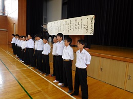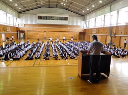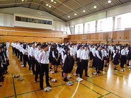 28日(月)、いよいよ2学期が始まりました。長い夏休みが終わり、新たな目標に向けての学校生活が始まりました。まずはじめは始業式。今年は校歌を意識する年にしようということで、なんとサッカー部のみんながステージ前に立って校歌を歌い、全校をリードして盛り上げてくれました。元気な歌声が素晴らしかったです。これが全校のものとなるように願います。学校長から全校生徒に励ましの話があり、その後表彰伝達を行い、夏休み中の大会等の健闘をたたえ合いました。終了後は教室に戻って授業を行い、午前中で初日は終了しました。大変落ち着いた雰囲気の中で2学期のスタートを切ることができました。これからも湖東中学校のよさを大切にしながら、よりよい学校づくりを目指して頑張ります。ご支援よろしくお願いいたします。