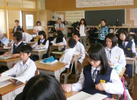 校区内の幼稚園や小学校の先生にお越しいただき、まず5時間目の公開授業を参観していただきました。