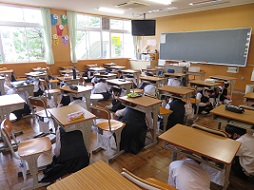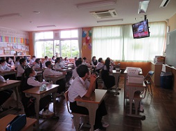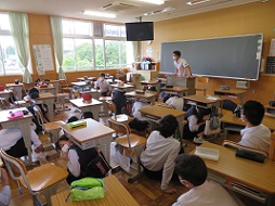 今年度初めての避難訓練に取り組みました。今回は、緊急地震速報が流れた際の初期対応と、避難方法などを学びました。緊急地震速報が流れると、素早く机の下で身を守り、その後の行動について、担任の先生から話を聞きました。災害はいつ起こるかわかりません。命を守る行動について意識を高めていきたいです。