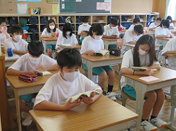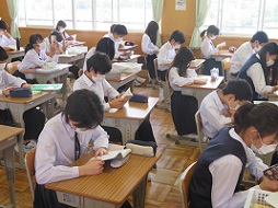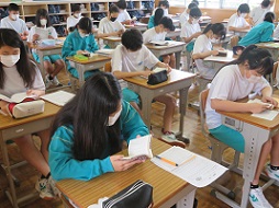 朝読書を開始しました。湖東中学校では「湖東タイム」と呼んでいる朝の10分間の取り組みです。全校生徒が取り組み、静かに落ち着いた雰囲気で1日が始まります。