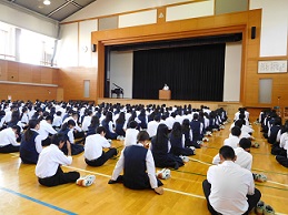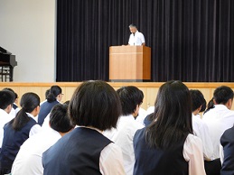 20日(木)、1学期終業式を迎えました。厳粛な雰囲気の中、全校生徒がきちんと前を向いて話を聞くことができました。校長先生から夏休みや夏季総体に向けての励ましの言葉を聞き、中村先生からは「校歌を考える一年に」と呼びかけられました。全校生徒と先生が一緒になって大きな声で校歌を歌える学校を目指します。3年生最後の大会となる夏季総体やコンクールに全力でチャレンジし、長い夏休みが充実したものとなるように願います。