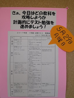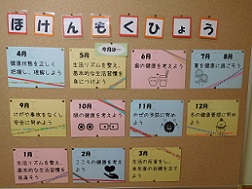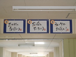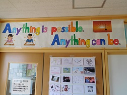 湖東中学校では、学校生活の環境を整えるために、各教室や特別教室、廊下の掲示物を工夫しています。正面玄関には「学校目標」、英語科では英語教室や廊下に学習成果物などを展示しています。1階の保健室前には、月ごとのめあてや身体測定の結果などが掲示してあります。また、中間テスト前ということで、廊下にメッセージを添えたテスト範囲表を掲示してある学年もあります。各教室は担任が生徒と一緒に作って整えています。教室の様子は、学校だより「さざんか」でも紹介されています。来校された際には、ぜひご覧ください。