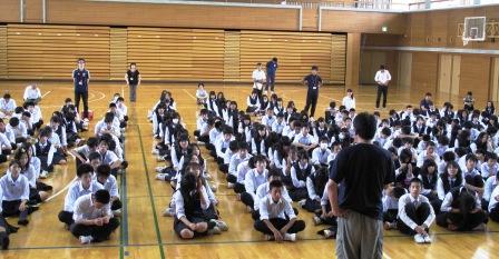 終業式では、92歳から短距離走を始めて、100歳だった2010年にマスターズ陸上滋賀大会において、100~104歳の男子100㍍の部で29秒83の世界記録を樹立された《現在も破られていない》、京都市在住の宮崎さんの話をしました。