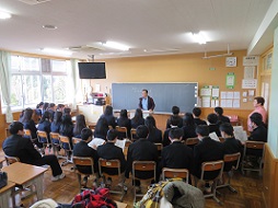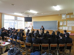 地域ボランティアさんによる絵本の読み聞かせ。今回は3年生です。朝読書の時間を利用して実施しています。生徒は静かに話に聞き入っていました。次回は2月に2年生を対象におこないます。すてきな時間をありがとうございます。