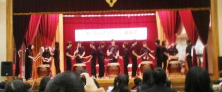 記念公演は湖東中学校の和太鼓演奏と学校紹介並びに人権学習の取り組みを、生徒会と有志で行ってくれました。