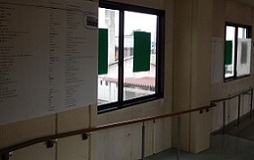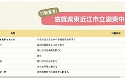湖東中学校は以前からNHKのキャンペーンである「100万人の行動宣言」に参加しています。NHK「100万人の行動宣言」のページには、いじめをなくしたいという湖東中学校の生徒たち全員の思いが毎年掲載されています。今週に入り、全学年が道徳の時間に学び、一人ひとりの行動宣言をつくる取り組みをしています。全校生徒が通る自転車置き場には「いじめをノックアウト」の文字が掲示され、2階渡り廊下にはこれまでの行動宣言が掲示してあります。現在制作中の行動宣言は葉っぱの形に切りとり、全校生徒の作品を集めて大きな木を作ります。29日(金)の文化祭で展示しますので、ぜひご覧ください。
