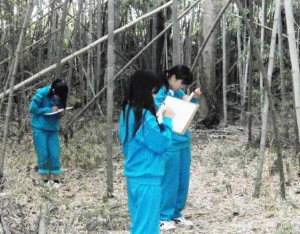 1年生は環境体験学習で愛知川、八千代橋のたもとにある河辺生き物の森へ出かけました。