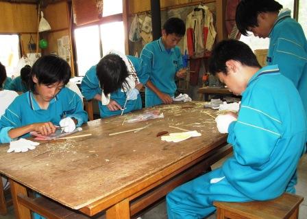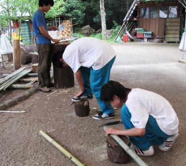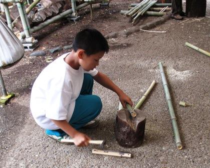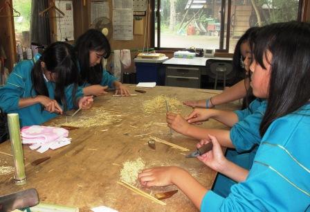 昼からは竹を切ったり削ったりして、お箸・フォーク・どんぐり鉄砲・水鉄砲・竹とんぼ作りなどを黙々と続けました。
