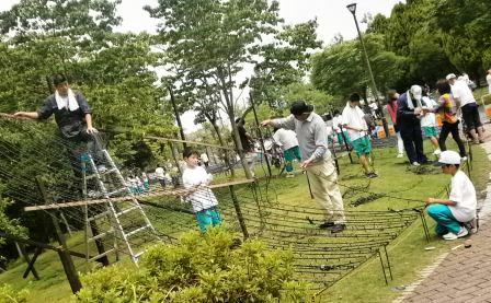 活動の内容は、すっかり恒例となった、コトナリエの電飾設置のお手伝いです。