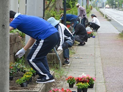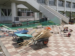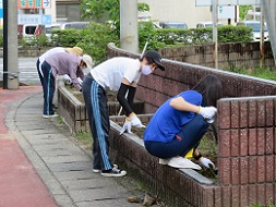 6月1日の学校再開に向けて、できるだけきれいな環境で生徒を迎えようと、全職員で除草作業と植栽を行いました。職員だけの少人数の作業のため、すべてを整備することはできませんでしたが、ずいぶんきれいになりました。生徒たちが気持ちよく登校してくれたら嬉しいです。