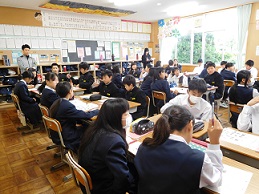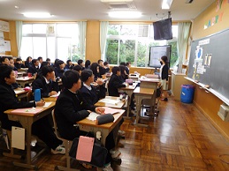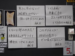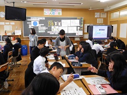 市内小中学校から栄養教諭をお招きし、1年生で食育学習「カルシウム教室」の授業をしていただきました。心身の成長に重要な時期でありながら、骨の形成に必要な学校給食の牛乳を残す生徒が多い現状をうけ、今回の学習を行いました。先生の話をしっかり聞き、グループごとに献立を考えるなどの活動に意欲的に取り組んでいました。今後の食生活に生かされることを願います。