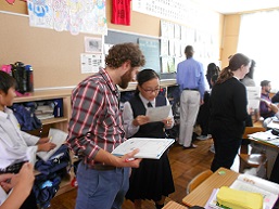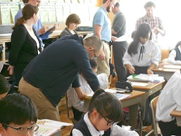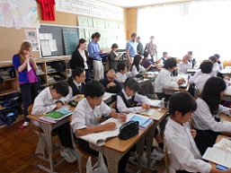 市内のALTの先生が集まって授業研究会が行われました。湖東中学校の中野先生とALTのムサシ先生の授業を参観してもらいました。学力向上を目的として、さまざまな授業研究を行っています。生徒たちのいきいきと活動する姿が見られました。今後も授業改善に積極的に取り組んでいきたいと思います。